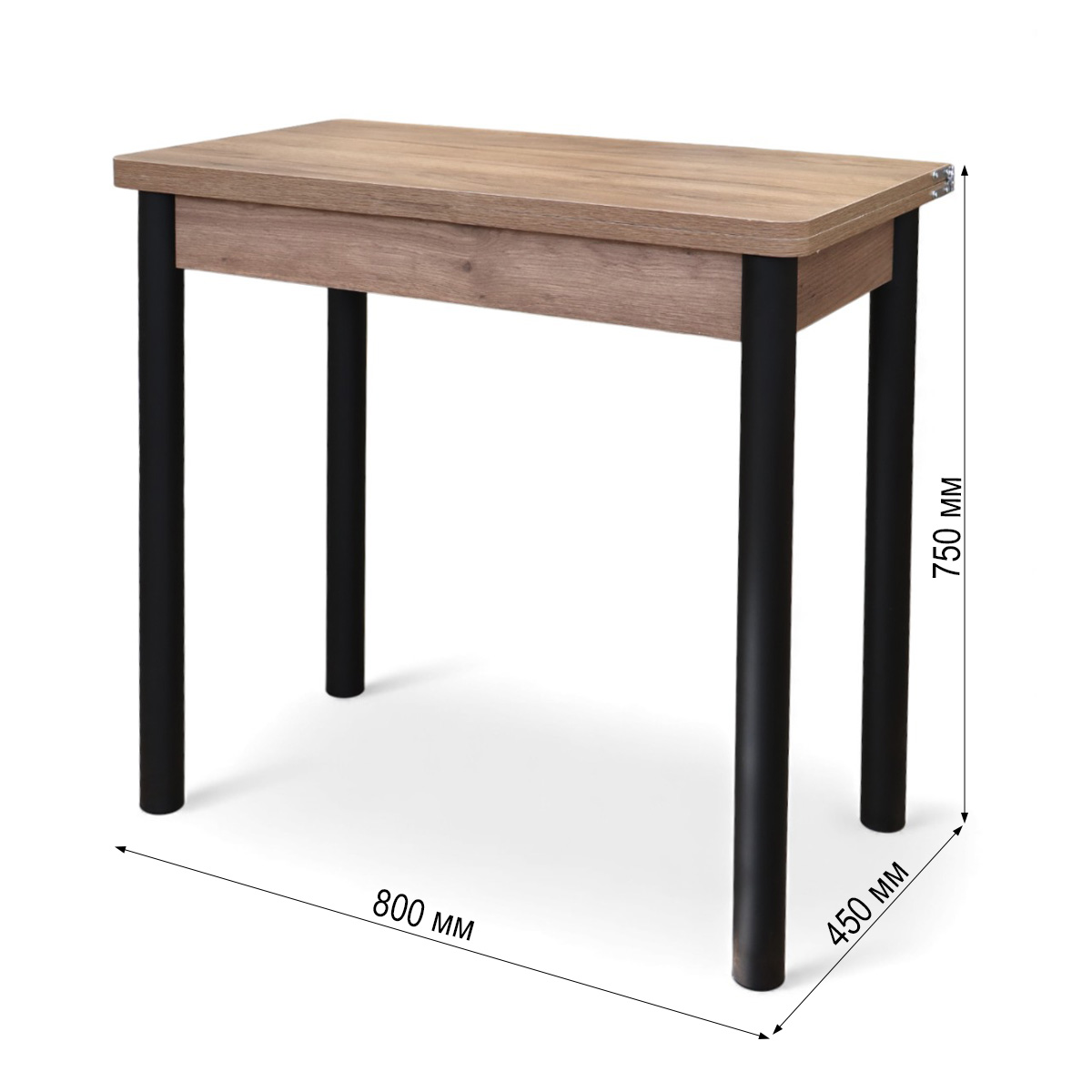 Стол кухонный Уют 4 45(+45)*80*75 Дуб крафт табачн/черный