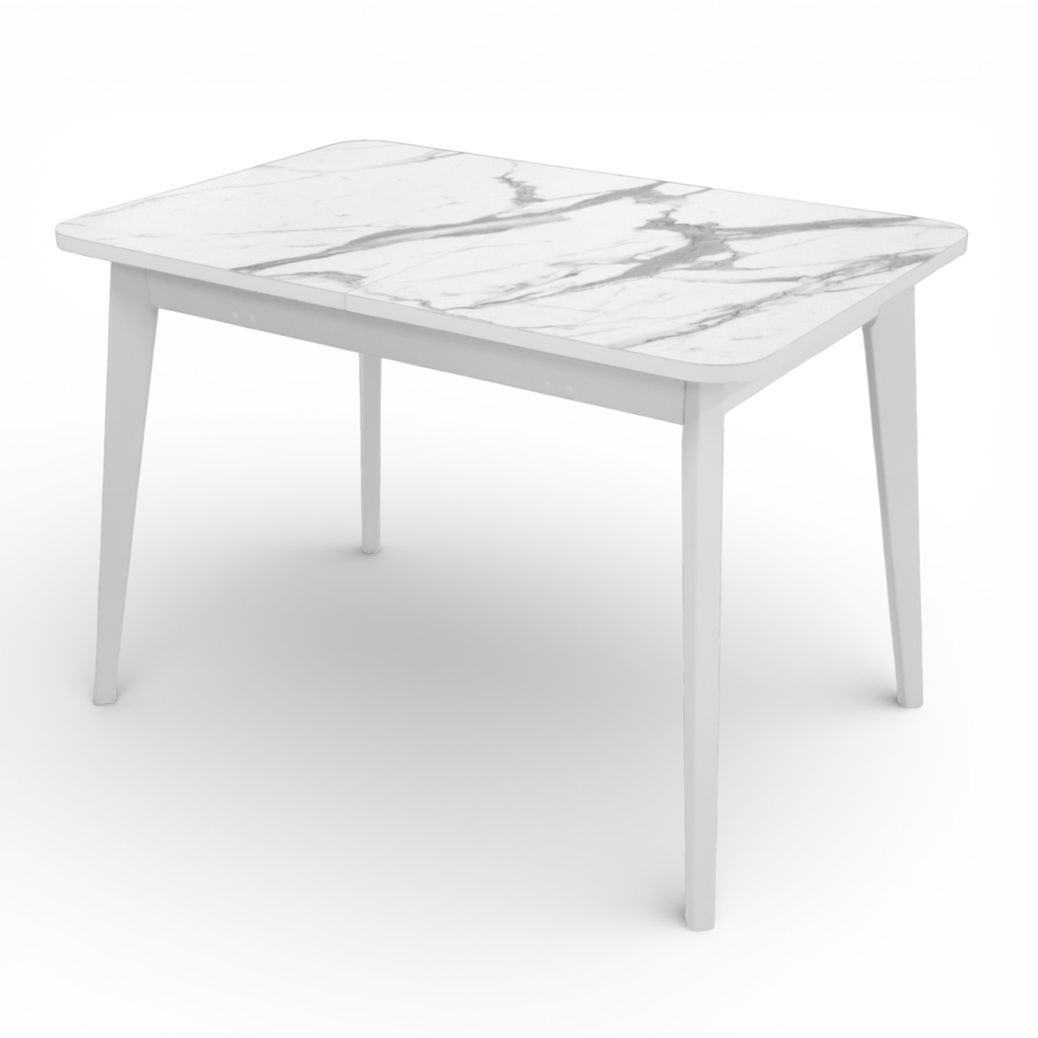 Стол Бриз-2 1100(390)*740 Пластик, 005 Венато (Мрамор белый), подстолье дерево,эмаль белая