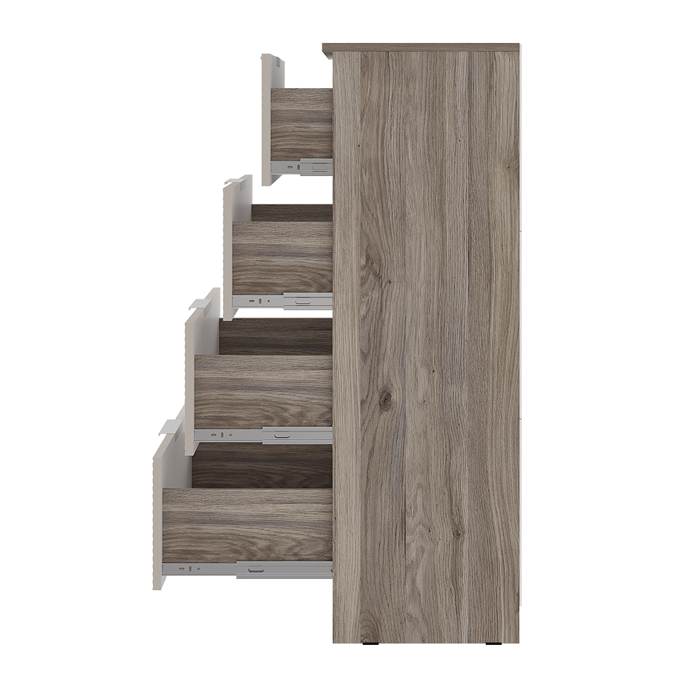 Комод «Эмилия» КМ-02 — это идеальное сочетание минималистичного дизайна и продуманной функциональности. Модель с четырьмя просторными ящиками станет стильным решением для хранения одежды, белья и аксессуаров в спальне, гостиной или детской. Нежная цветовая гамма «дуб смоки» и «айриш» в сочетании со стильной фрезеровкой фасадов наполняет интерьер светом и легкостью. Эргономичные фасады обеспечивают удобное и легкое открывание ящиков без лишних усилий.
