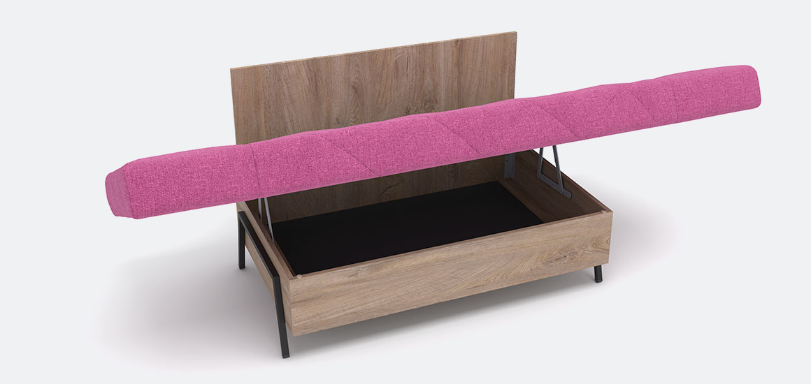 Идеальное решение для кухни, балкона или прихожей. Компактная кушетка с бельевым ящиком и раскладывающимися подлокотниками, которые позволяют менять её размеры. Легко раскладывается в ровное спальное место с анатомическим матрасом.
