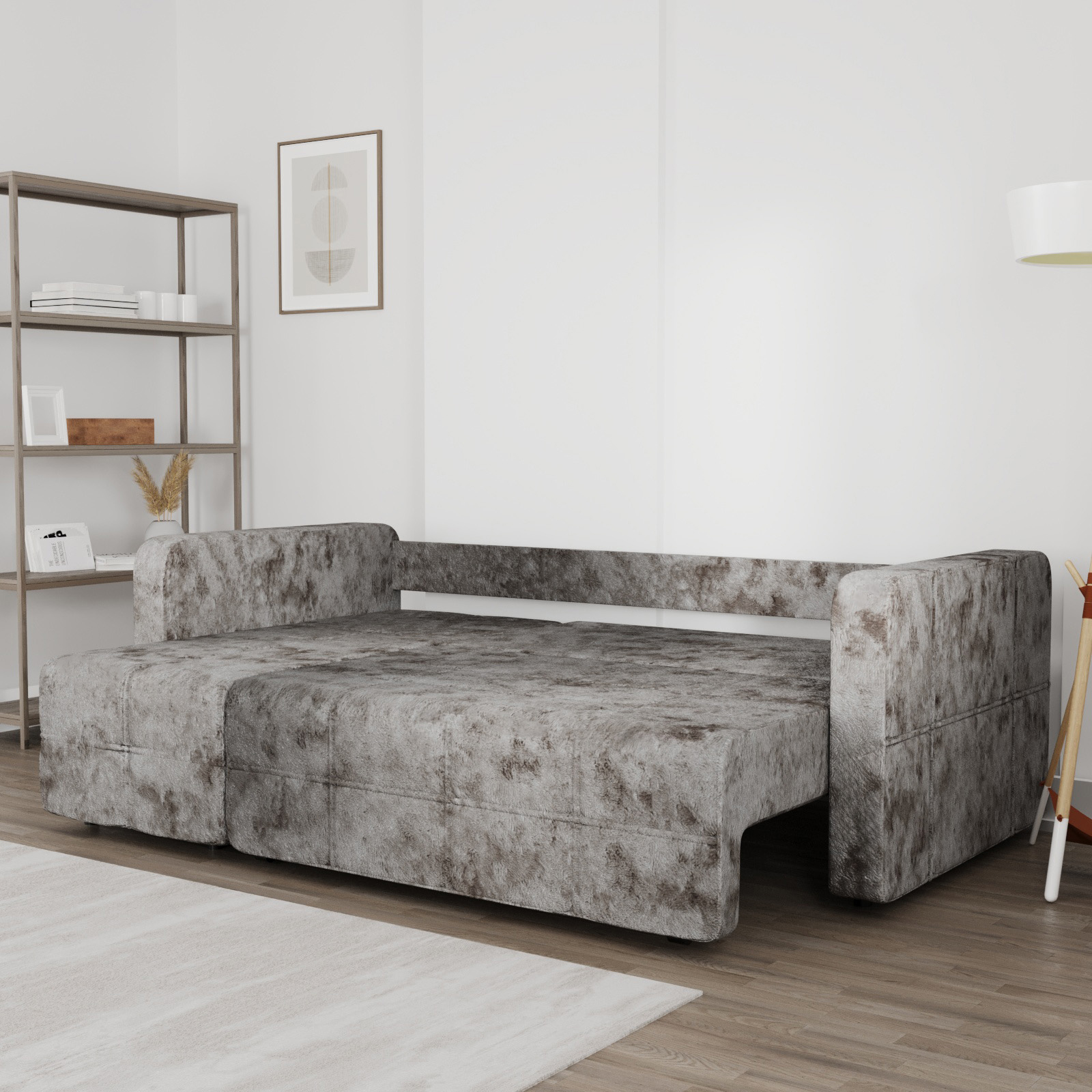 Диван обладает средней жесткостью, что оптимально для комфортного и здорового сна, поддерживая позвоночник. Обивка выполнена из износостойкой ткани, устойчивой к повседневным нагрузкам, что гарантирует дивану опрятный вид на годы.