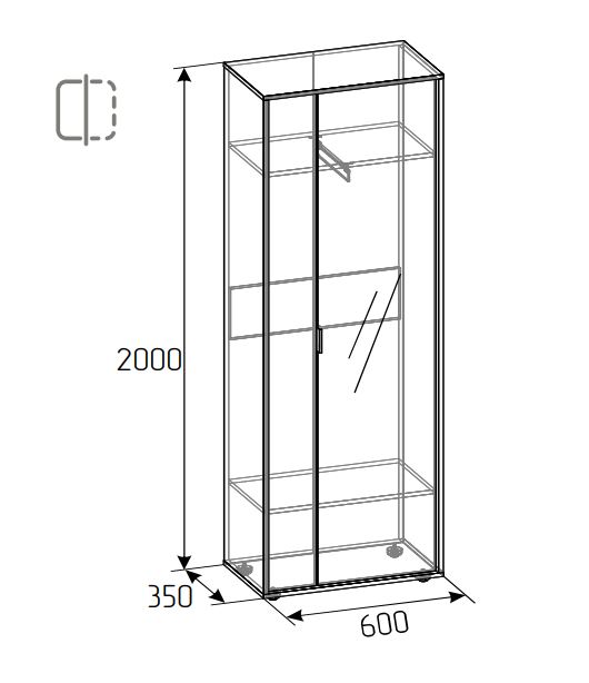 ✓ Вместительный шкаф (200 см): Полки, выдвижная штанга для одежды и полноразмерное зеркало.