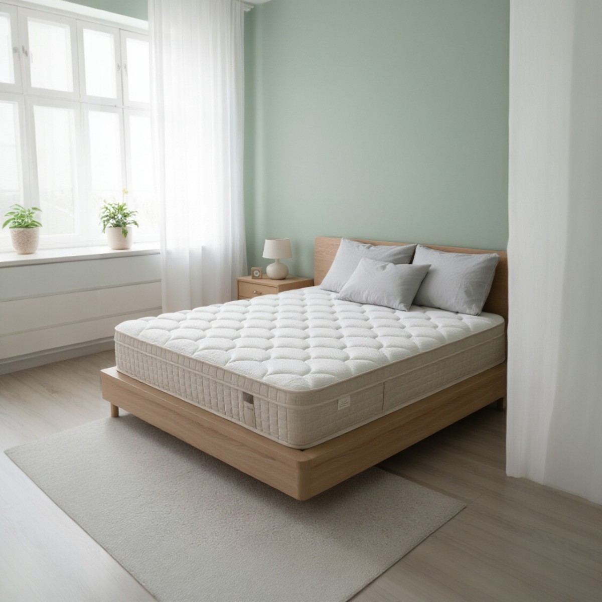 • Натуральный хлопковый наполнитель: Окружает блок пружин, смягчая жесткость и улучшая циркуляцию воздуха.