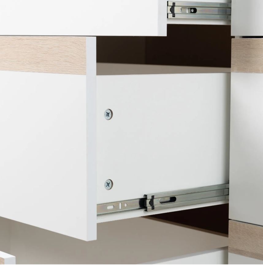 Серия представлена в двух элегантных цветах: белом и антраците, с акцентами декора в дубе сонома.