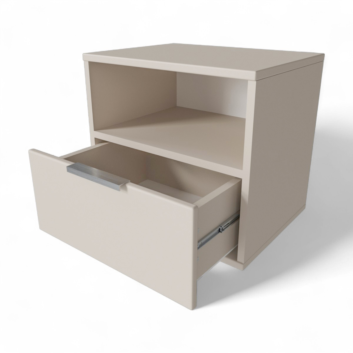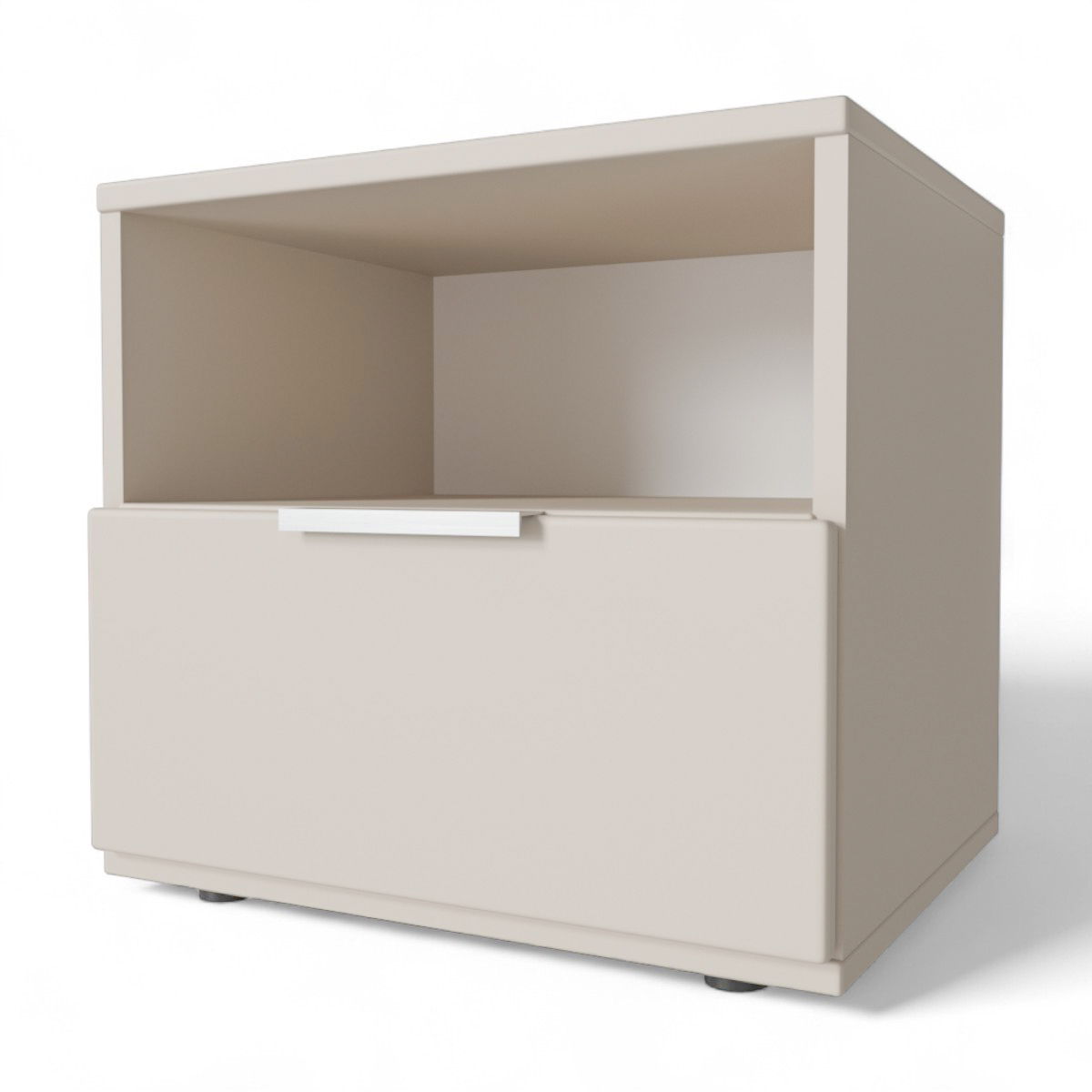 Утонченная тумба с выдвижным ящиком создаст гармоничный акцент в вашей спальне. Модель выполнена в теплой гамме "Кашемир/Дуб Латте" - нежное сочетание фактур создает особую атмосферу уюта.