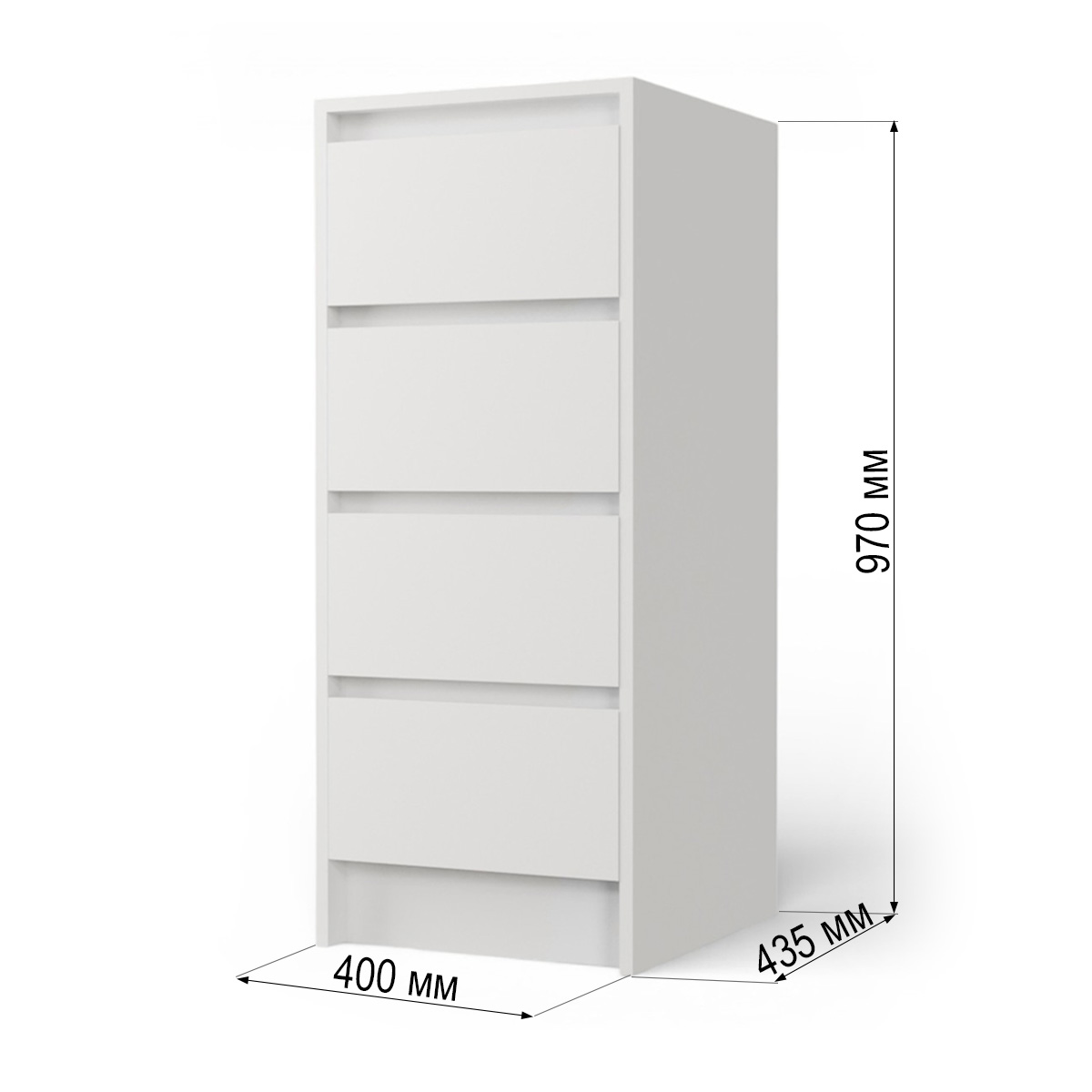 • - 4 вместительных ящика: Забудьте о беспорядке! Четыре глубоких ящика позволят аккуратно разместить одежду, белье, аксессуары или любые другие мелочи.